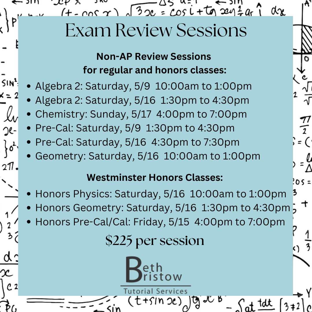 Prepare for AP exams and end-of-year testing with small group review sessions across a variety of subjects.
