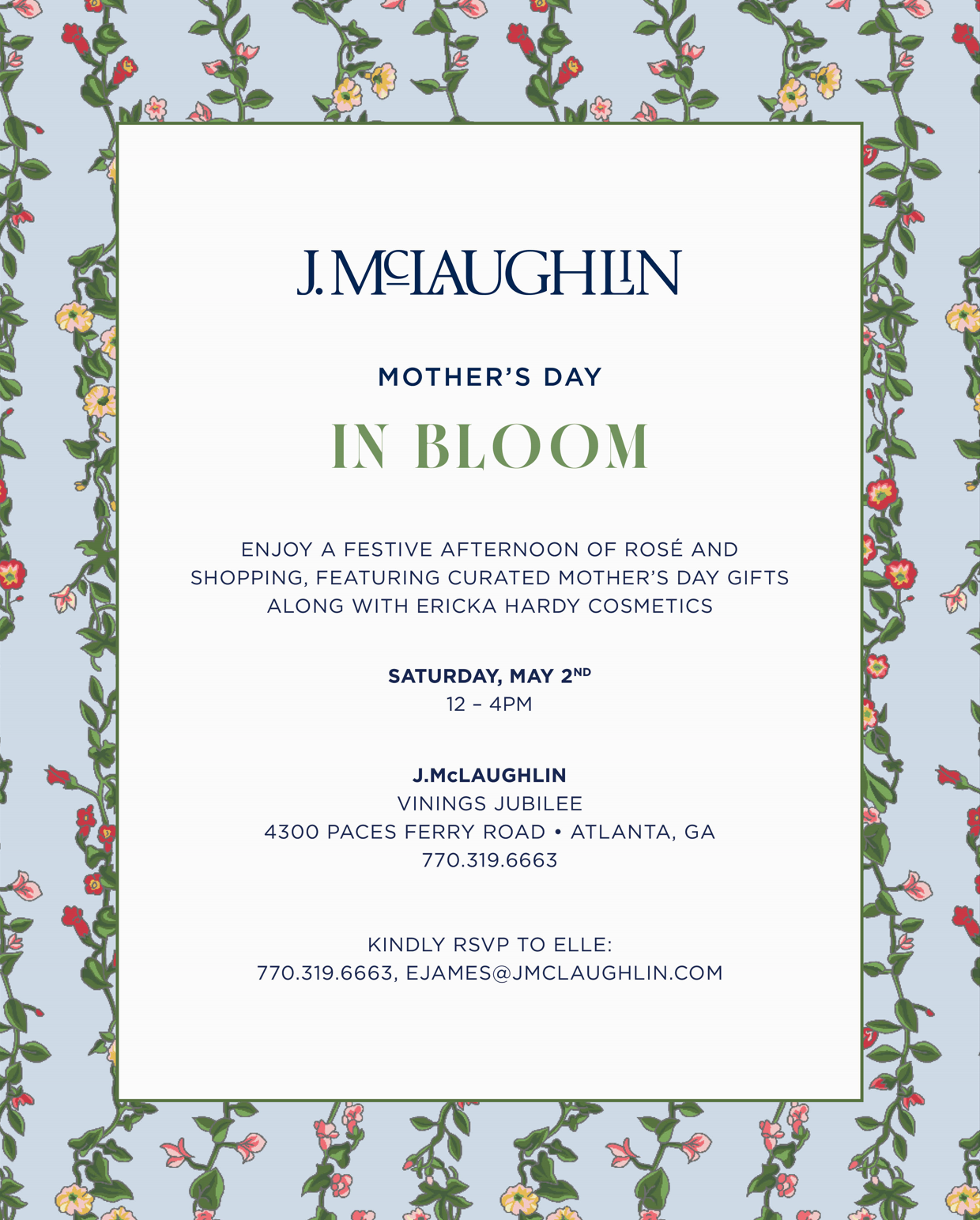 Kindly RSVP to Elle at ejames@jmclaughlin.com or 770.319.6663.